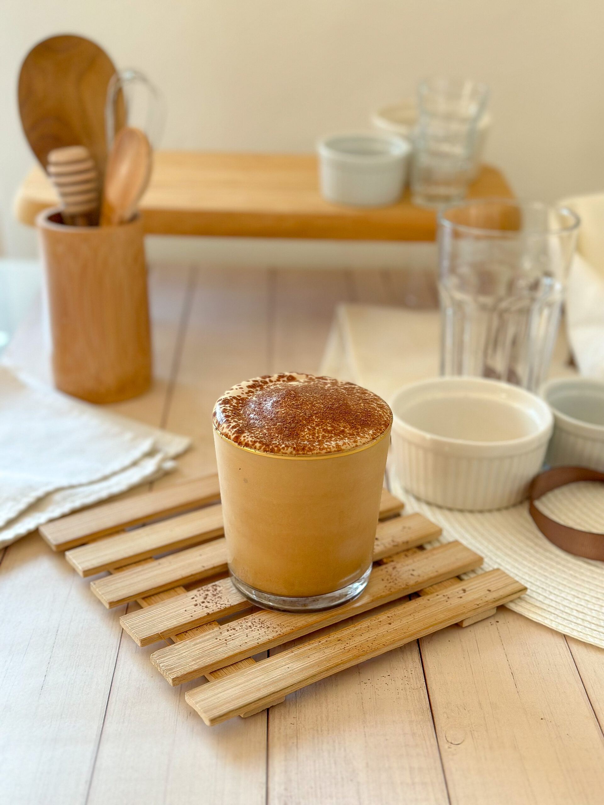 - In una ciotola capiente e dai bordi alti metti l’acqua, il dolcificante e il caffè solubile;